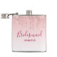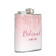 A modern, trendy flask for your bridesmaids. The background has an image of sparkling pink glitter drips along the top. The rest of the background is a delicate pastel pink color gradient.