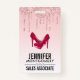 A modern, trendy design on a name tag. The background has an image of sparkling pink glitter drips, along the top. The rest of the background is a delicate pastel pink color gradient. A pair of high heel pink stilettos add a stylish fashionable vibe. A fancy classy divider line separates your name and profession.