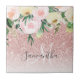 Modern Pink Glitter & Flowers Sparkle With Name Ceramic Tile