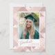 Modern Pink Rose Gold Glitter Script Girl Photo Graduation Announcement Card. Celebrate the grad with this modern and elegant photo graduation announcement card. All the texts are pre-arranged for you to personalize easily and quickly with your own details.