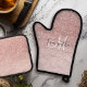 Modern Pink Glitter Sparkles Personalized Name Oven Mitt & Pot Holder Set