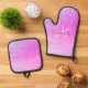 Modern Pink Glitter Sparkles Personalized Name Oven Mitt & Pot Holder Set
