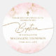 Modern Pink Gold Cross Girl Baptism Classic Round Sticker