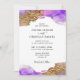 Plain white envelopes are included with paper invitations and will come to fit the invitation size you select. If you don’t need the envelopes, you may choose to not receive them by selecting the dropdown below "Envelopes" and choosing "None." If you’d like to have a design on your envelopes, you can browse all of these available envelopes to find the design that complements your Modern Pink Gold Purple Ink Wedding Invitation.
