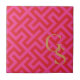 Modern pink greek key geometric patterns monogram tile