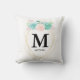 Modern Pink & Green Watercolor Succulents Monogram Throw Pillow