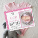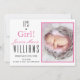 Celebrate the beginning of life for your precious new baby girl and share the news with family, friends, and neighbors by sending this cute and modern birth announcement for a girl. This girl birth announcement features the text "It's a Girl!" in colors of black and pink. Personalize with your baby girl's photo and her birth stats. Put a personal note on the back of the card.