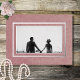 This beautiful save the date foil postcard design features a soft dusty pink marbled background with your photo in the center. The foil text appears on top of your photo, with a floating white text box surrounded by two foil frames. Created by Simply Farmhouse Press.