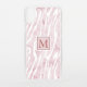 Trendy Modern Pastel Pink and White Animal Print on Marble Pattern with Monogram Phone Case.