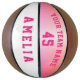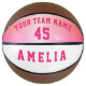 Modern Pink Metallic Player Team Name Number Basketball. The background is a faux pink metallic texture. This custom and personalized basketball is a perfect gift for a basketball player, teammate, coach,... Personalize it with your team name, number and your name. A great keepsake to remember the favorite sport. Great for a girl basketball player.