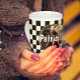Modern Pink Monogram | Black & White Checkerboard Coffee Mug