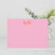 Modern Pink Orange Monogram Initials Personalized Note Card