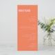 This wedding menu in pink and orange features clean typography and a neutral color palette that works with many wedding themes. Personalize the menu items to match your reception meal and course selections. A simple, stylish option for wedding table settings and place settings. Designed to coordinate easily with modern and minimalist wedding decor.
