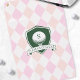 Modern Pink Pattern Green Golf Ball Name Monogram Golf Towel features a soft pink and blush argyle pattern that creates a timeless, preppy aesthetic with a charming feminine touch. The classic diamond layout forms a balanced and polished background, while the deep green crest-style emblem at the center adds contrast and structure. The monogram letter and personalized name banner layered within the shield give the design a refined, collegiate-inspired feel.