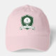 Modern Pink Pattern Name Initial Monogram Golfer Hat marker features green crest-style emblem. The monogram letter and personalized name banner layered within the shield give the design a refined, collegiate-inspired feel.