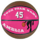 Modern Pink Player Team Name Number Basketball for a girl basketball player. The design has a black silhouette of a basketball player with a basketball. The text is in modern fonts - personalize it with your team name, number and your name. Perfect gift for a girl basketball player, teammates, coach or a keepsake to remember the favorite sport.