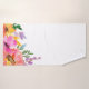 These chic and beautiful floral towels feature a bright and colorful modern bouquet pattern of watercolor flowers with shades of pink, purple, peach, coral, yellow, green, and blue. This is the perfect towel set for a trendy space or for the girly girl who loves elegant spa-like towels.