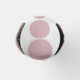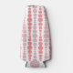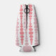 This bottle cooler has a mid-century modern design of pink and lavender rounded rectangles in increasing and decreasing size running vertically on a field of white.