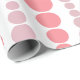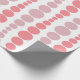 This wrapping paper has a mid-century modern design of pink and lavender rounded rectangles in increasing and decreasing size running vertically on a field of white.