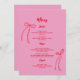 Celebrate your birthday in style with our modern pink red bow hand drawn menu. This design features my whimsical bow illustrations with hand written typography. This menu goes well with any pink red themed celebration, whether it's your birthday, hens party, bridal shower or girls night.. Simply edit your menu information or personalize all details by click on the "Personalise this Design" button.