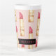 Modern Pink & Red Lipstick Pattern Girly With Name Latte Mug