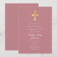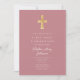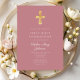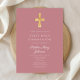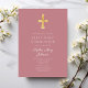Modern Pink Religious Cross Girl First Communion Invitation
