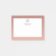 Elegant modern notepad with a luxurious brushed metallic gold monogram emblem. Custom name or custom text presented on a simple white background, framed by a gradient border in shades of pink rose gold. Personalize using the fields provided or use the 'message' button to contact the designer for help.