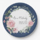 Modern Pink Roses Script Class of Graduation Paper Plates