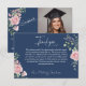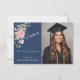 Modern Pink Roses Script Graduation Photo Thank You Card