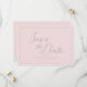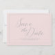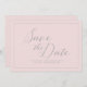 Elegant save the date card features modern typography "Save the Date" set against a pretty pink background.
