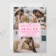 This stylish save the date card features a modern and romantic design, perfect for announcing your special day. The card is divided into four photo slots, allowing you to showcase your 3 favorite engagement pictures or couple moments in a collage format. The central text area is elegantly framed and highlights the essential details of your wedding date in a chic, contemporary font. The hot neon pink accents add a touch of boho luxury, while the pastel retro pink background keeps the overall look clean and sophisticated. Ideal for couples who want to share their love story with a personalized touch, this card is both beautiful and memorable, setting the perfect tone for your upcoming wedding.