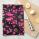 Modern Pink Scandinavian Floral Pattern Kitchen Towel