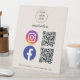 Add a pop of pink to your business setup with this modern pedestal sign featuring a custom QR code for Instagram, Facebook, or any social media link! Perfect for salons, boutiques, pop-up shops, and influencers who want to connect instantly. Just scan and follow—easy networking at its best! Personalize with your logo, business name, or custom text for a stylish and professional touch. A must-have for social media marketing!