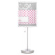 This lamp is simple yet elegant, featuring a design of pink squares with gray stripes and white swirls. The design is personalized with a place to enter a name. Beautiful addition to a nursery or girl's bedroom.