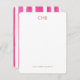 Modern Pink Striped Monogrammed Initial & Name Note Card
