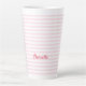 Modern Pink Stripes Elegant Typography Monogrammed Latte Mug