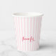 Modern Pink Stripes Elegant Typography Monogrammed Paper Cups