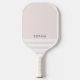 Modern pink stripes pickleball paddle that is personalized with your name.