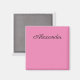 Pink solid colored background. TEMPLATE for a name in Black Script. A Modern kitchen magnet featuring an easy-to-personalize template, for the perfect custom kitchen.