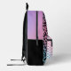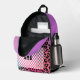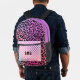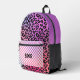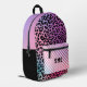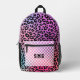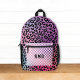 This fun kids backpack design features shades of pink, purple, black and white with a mix of leopard and check patterns. Your own monogram is on the front. It's a fun modern design for all ages - kids, tweens, teens and even adults!