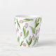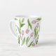 The product design features a pattern of pink tulip flowers. This botanical illustration makes an elegant modern and unique latte mug - Her birthday, Easter, Mother’s Day, or wedding gift idea.