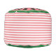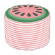 This cute pouf features a pink watermelon with seeds on top and pink and white stripes on the side. On the bottom is the green rind. Great for nursery or kid's room.