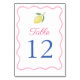 Modern Pink Wavy Border Lemon Wedding Table Number