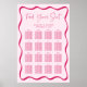 Keep your seating plan clear with this Modern Pink Wavy Frame Wedding Seating Chart Poster. A light pink background with a bold pink wavy border frames up to 16 tables, with guest names listed beneath each heading. The phrase “Find Your Seat” is displayed at the top in handwritten script, with your names and wedding date completing the design. Available as a professional print or instant download to print at home.
