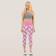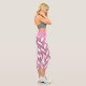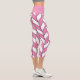 These modern capri leggings feature a trendy geometric herringbone pattern in pink and white.