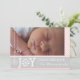 Modern pink white stripes grey Christmas holiday Card