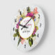 Modern Pink & White Watercolor Floral Wedding Large Clock