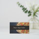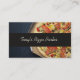 These pizza parlor business cards are perfect for your pizza restaurant and feature a cheese pizza on a wooden table with white text over a bold dark band.