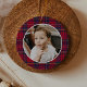 Modern Plaid Christmas Photo Ceramic Ornament. Click the personalize button to edit this design with your photos and details.