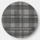 Modern Plaid Pattern with Custom Name Black Grey Wireless Charger
